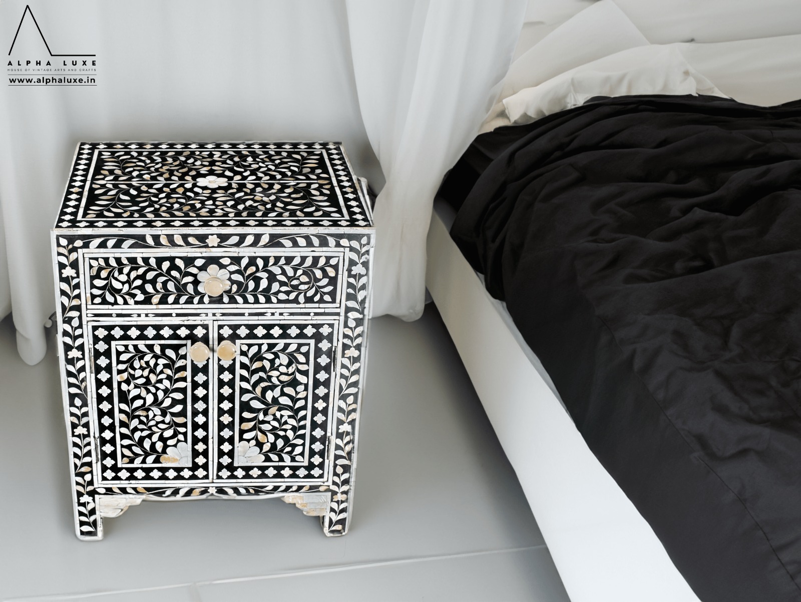 Black Bone Inlay Bedside Cupboard