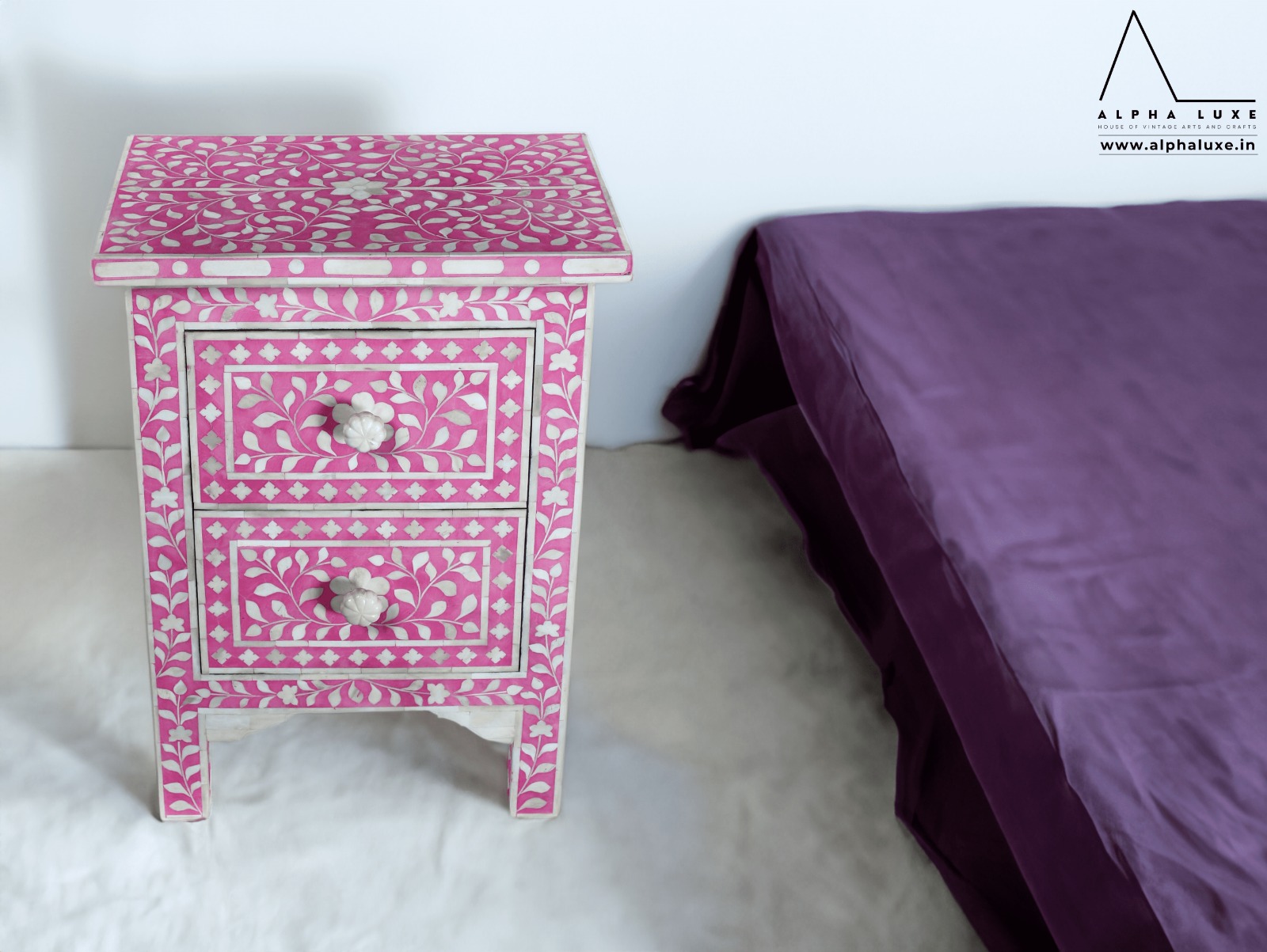 Pink Bone Inlay Bedside