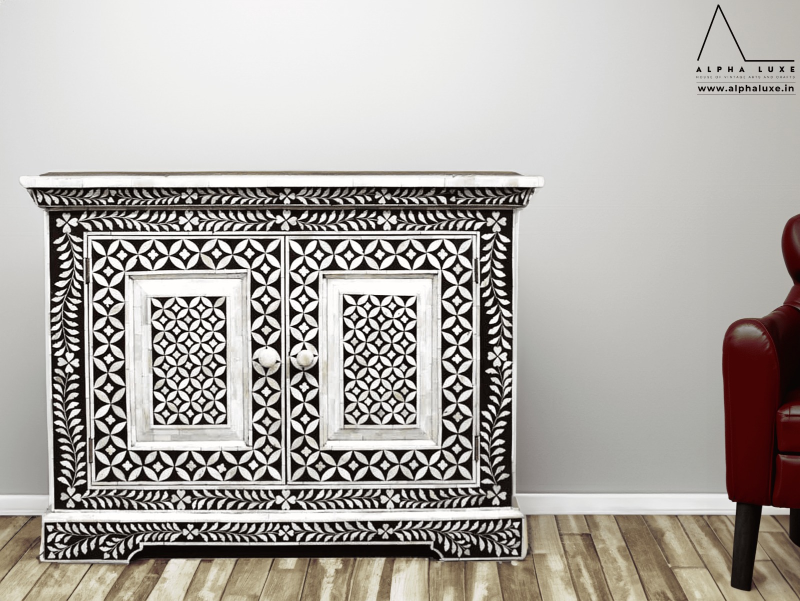 Bone Inlay Wooden Modern Floral Pattern 2 Door Bedside Furniture