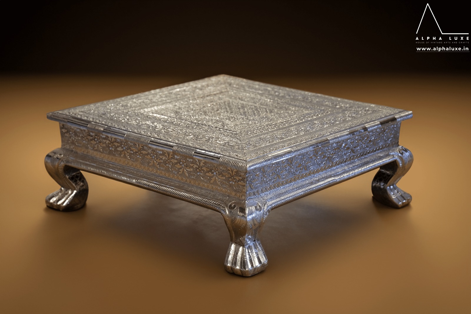Intricate Flower Design Silver Chowki