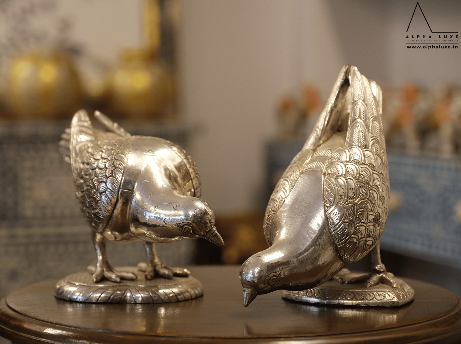 Embrace the arrival of happiness, peace and prosperity in your home by bringing to your home this winsome Silver idol of a pigeon, a worshipper of Laxmi Mata.