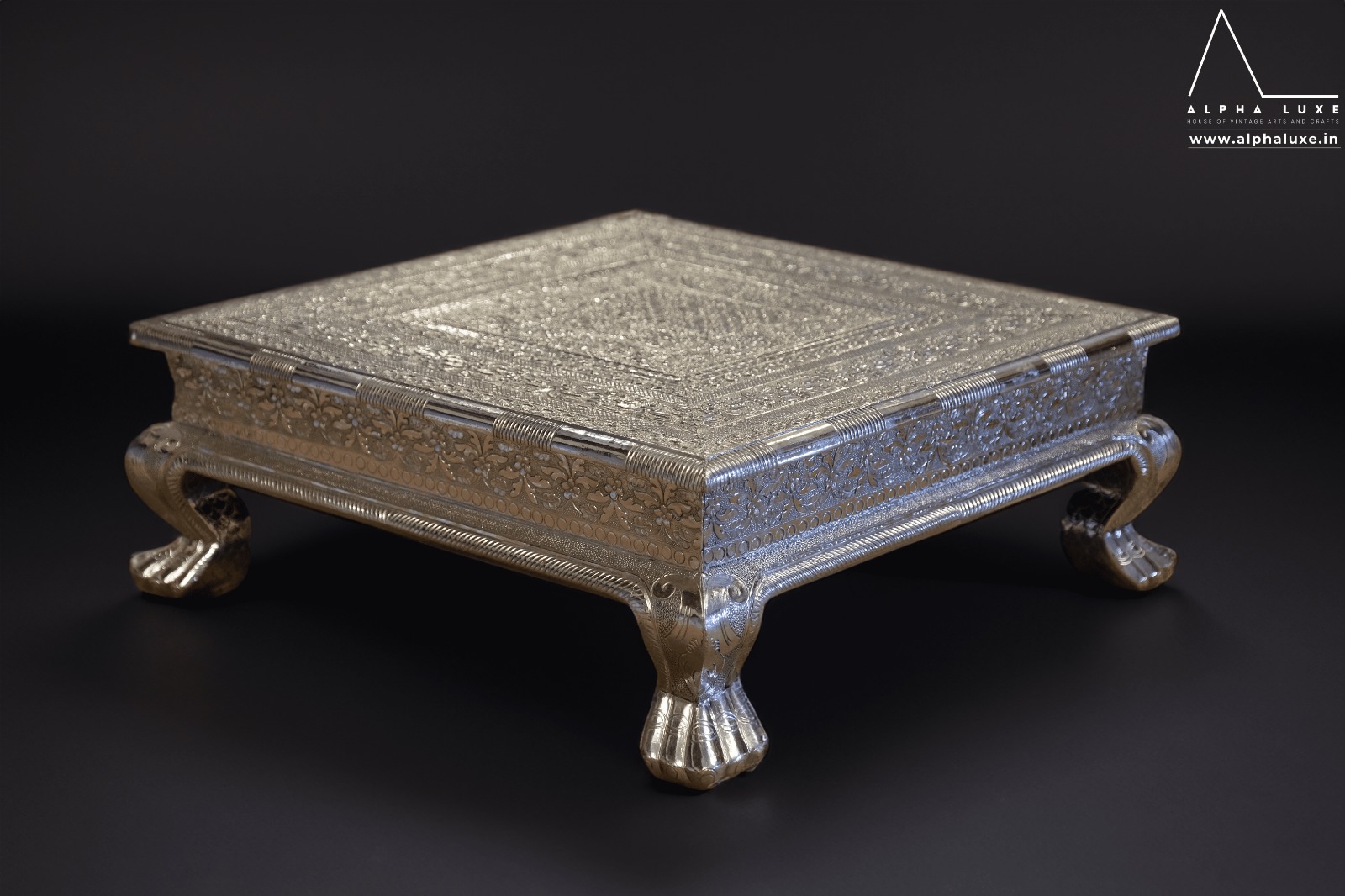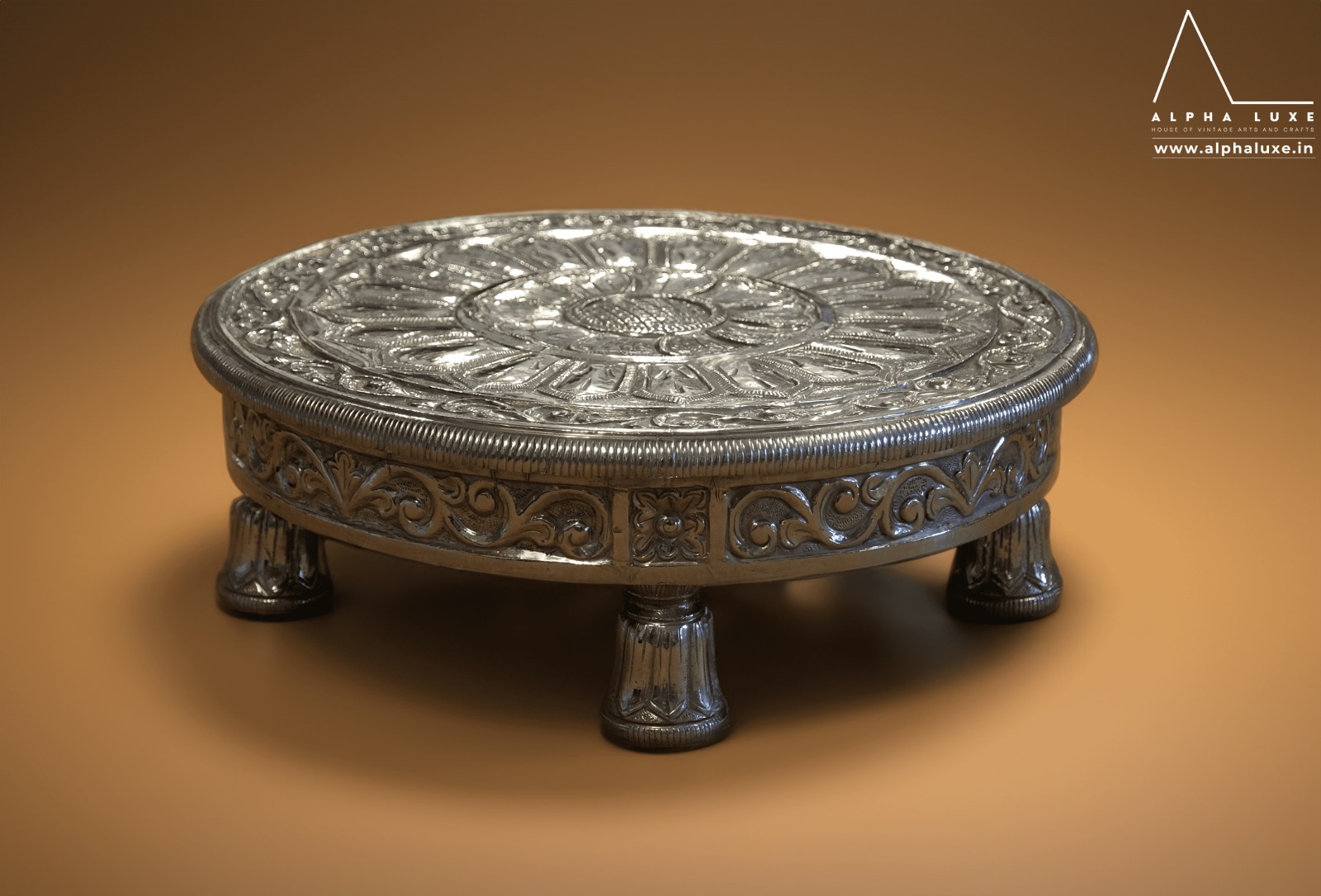 A Silver Chowki inspired from the pretty Dahlia flower which symbolises an added sense of kindness in your home.